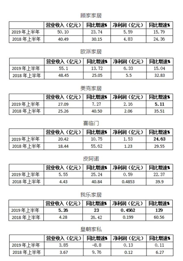 从以上七组对比数据可以看出,只有我乐家居的净利润增速,今年上半年超过去年上半年。其它6家公司的经营收入增速与净利润增速,今年上半年都大幅落后于去年上半年。