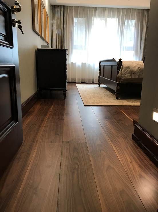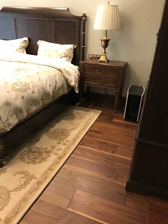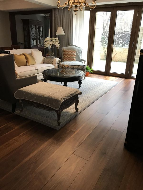 Jumbo Floor胡桃木让150年树龄以上的树木庄严再现,它最大的特点在于非凡的尺寸,每一块独立地板的宽度可达到50cm。业主当初选择它也是第一眼被其豪华的尺寸所吸引,铺装完之后,业主的家里更显大气豪华,拥有无限的延伸感与空间感。再配合业主定制的高档家具,让家更古典优雅。