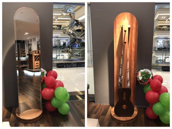 这款衣帽架的亮点在于可以360度旋转,占地面积小,放在哪里都不会尴尬。上面挂衣服,下面的底座上可以放置鞋子。将镜子和衣帽架合二为一的设计十分贴心,另一侧的吉他造型美观,上面的挂钩还可以放置包、围巾、帽子。小小的体积却功能强大。