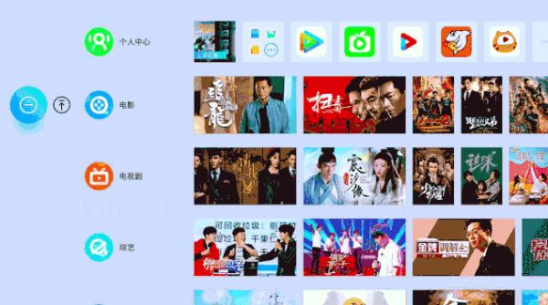接下来进入主页面后,便是一幅清新素雅的画卷,没有过于复杂的背景颜色。也没有像常见的瀑布流的模块,而是每个版块横式排列,除了常用的电视、电视剧版块,还有千人千面推荐系统,可以根据你常常点播的内容进行自动推荐。