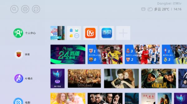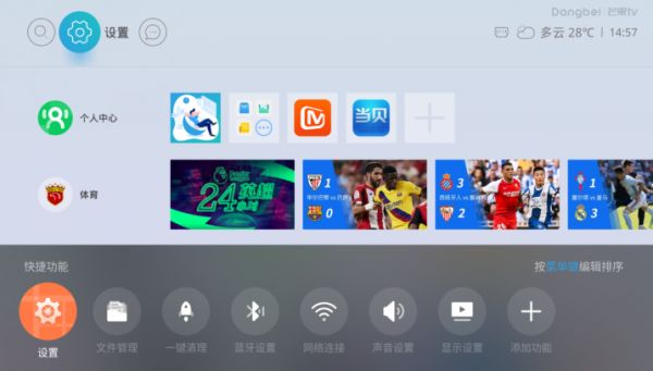 当贝盒子B1还独创性的开发了主页面自定义功能,只需要在板块logo处选择“左键”,就能将该板块直接删除,或者是置顶;顶部应用列表也可以自定义选择应用排序,老少咸宜,轻松打造只属于你自己的投影主页!