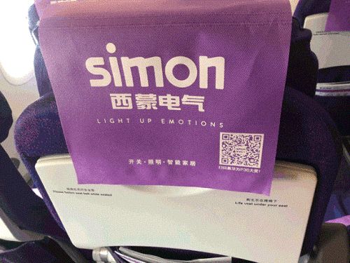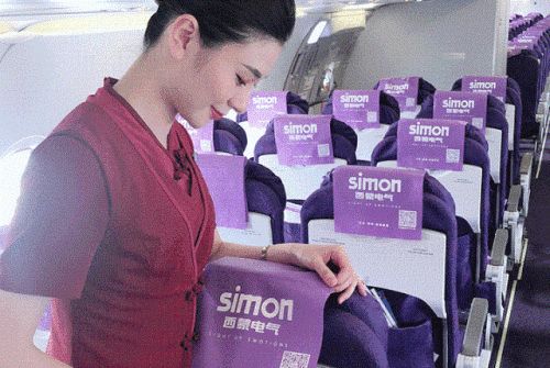 2019年西蒙电气首次携手吉祥航空,投放以上海为中心,覆盖国内所有航线飞机广告,涉及航班线路150条,到达城市126个,以近12000个座位每周平均2165班次的频率,周触达客流达到30余万人次,全年累计触达客流超过1600万人次。