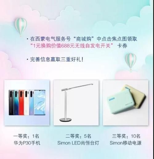 为进一步增添旅途乐趣,西蒙电气特别设置了扫码有奖活动——旅客通过扫描二维码,在西蒙电气服务号“商城购”中点击焦点图,即有机会赢取华为P30手机等三重好礼,更可即时领取“1元换购价值688元无线自发电开关”卡券,抢先体验西蒙电气2019新晋上市的i6系列全面板开关的智能新品!