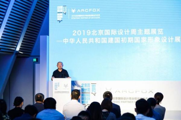 清华大学美术学院教授李德庚在台上发言表示,本届设计周的主题展览将于2019年9月5日-10月7日在中华世纪坛艺术馆举办。此次展览由北京国际设计周组委会与清华大学美术学院联合主办,以《中华人民共和国建国初期国家形象设计》为主题,紧密围绕中华人民共和国成立七十华诞,将新中国的国家形象设计创作历程做一次相对完整的回顾与呈现。