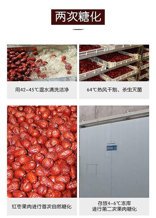 西域阳光有机红枣均为树上自然吊干后再进行采摘,红枣更绵甜,肉质金黄厚实。公司拥有12000平米工厂,18个冷库,采用现代科技进行加工,从电光三色分选,再到手工二次甄选,保证每颗红枣大小均匀,无虫无害,清洗红枣并进行两次糖化,无菌包装,保证红枣的优良品质。