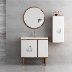 安华卫浴云影系列N1M80G10-C,设计来源于天光云影共徘徊的自然景观,清澈明净之中淡淡的云影。精选实木板材,白色与木纹色搭配木纹清晰;按压隐藏式开门方式,美观时尚;镜子木纹边框装饰,还有局部放大镜,实用与品位完美结合;中式简素风传递安静平和的气息,展现一种素雅的生活态度,以实现“和谐中正”的东方之美。