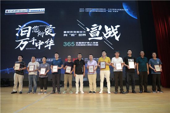 活动最后,全国工商联家具装饰业商会执行会长张传喜,国家人造板与木竹制品质量监督检验中心常务副主任付跃,北京家居品牌联盟理事长意风家居董事长温世权,北京城外诚家居广场市场部总经理刘洋,依思蒙沙(天津)实业发展有限公司董事长李岳顺,江苏中欧生态环境科技有限公司董事长田宝国,全国工商联家具装饰业商会材料和设备专委会会长、泊诺思新材料科技股份有限公司董事长胡方旭,万华生态板业总经理于文杰登台共同完成“泊”您所爱·万千中华——重塑环保新定义,向“醛”世界宣战启动仪式!