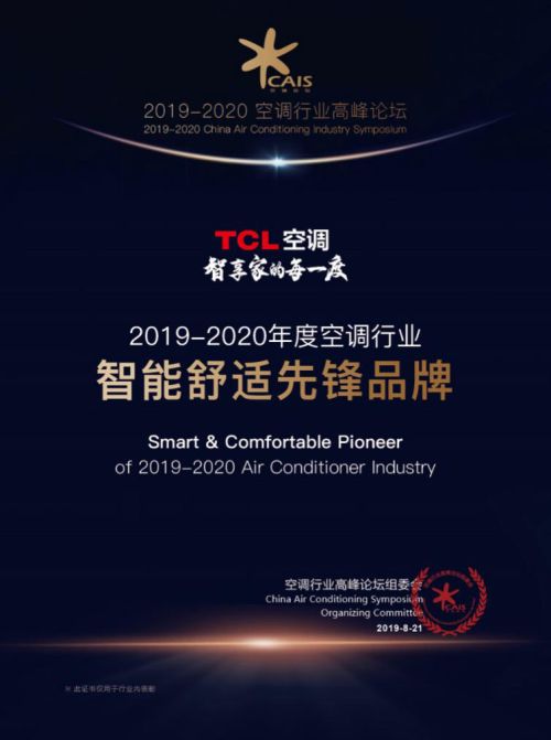 8月21日,由中国家电协会、国家信息中心信息化和产业发展部指导,中国家电网主办的“2019-2020中国空调行业高峰论坛”在京举行。TCL空调从众多国内外主流品牌中脱颖而出,荣膺年度空调行业“智能舒适先锋品牌”,高端精品U润系列斩获年度空调行业“舒适健康之星”。这是继首批适合中国人的“人类工效学-热舒适”好空调认证后,TCL空调获得的又一行业殊荣!