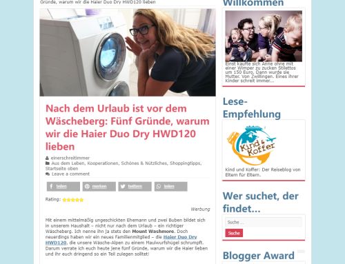 奥地利第一育儿博主选定海尔洗衣机:能分区,还智慧