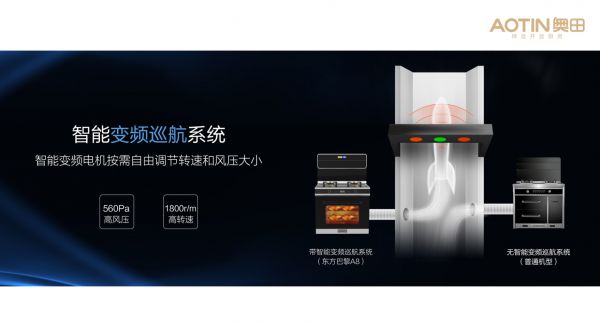 尤其是随着城市化的加剧,消费者的生活区域大多是在高层建筑或小高层建筑,几十户人家公用一个公共烟道。如果吸力太小,不仅油烟吸收不干净,在做饭“高峰期”的时候,很可能油烟排不出去,甚至引发倒灌的情况。而大吸力具体到参数上,就是风量和风压了,而集成灶的风量大多已经可以达到17m3/min,是目前市面上最大的风量。而在风压方面,也颇具优势。如奥田奥田A8集成灶,其智能变频电机可根据需要自由调节转速和风压大小,最高可达1800r/m 、560Pa高风压;不仅给高效干净的吸油烟提供了前提,也实现了节能。