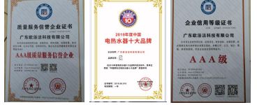 砥砺前行数十载,欧浴洁始终坚持把用户放在首位,用心服务于客户,其研发生产的智能集成热水器系列产品曾获得国家13项专利产品,通过国家3C强制认证。同时,欧浴洁科技还被授予“诚信AAA企业”、“AAA级质量服务信誉企业”、“AAA级重合同、守信用企业”等8大誉称号,坚持“科学管理、精益求精、提供顾客满意的产品和服务”的质量方针,秉承“尽责做好履行欧浴洁产品质量及售后服务、尽力做好品牌的优化服务、尽心做好为客户着想的超值服务”的理念,始终把提高客户满意度,打造优质和诚信服务品质品牌放在首位,获得了广大顾客和各级部门的充分肯定,积极推动了企业的发展。