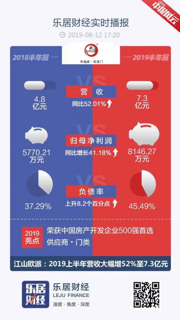 江山欧派发布半年度报告,营收大幅增52%至7.3亿元