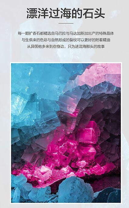 此次登录苏宁众筹的三色香氛石一共有三种香型:凋零玫瑰,前调的玫瑰味糅合紫罗兰和檀香与散发温柔磁场的粉水晶完美融合;尼罗河畔,前调的柠檬香草荚清新夹带冷淡的木香,配合薄荷绿的水晶给燥热的夏季带来丝丝冰凉和清爽;月光夜曲,高贵典雅的紫晶搭配薰衣草精油让你的好梦,在这一晚更甜。