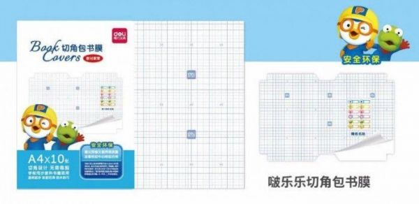 发了新课本,需要新的外衣吧?以前都是买一堆大的牛皮纸回来包书,但是包起来很麻烦,而且剪裁的时候也废纸。现在买得力70577-70580包书皮就很方便啦,书皮表面有可爱的啵乐乐图案,让你的书本在同学中闪亮“出道”!这款包书皮还同步学校教科书尺寸,进行切角设计,无需裁剪就能把书本包得非常完美;而且书皮表面采用透明磨砂材质,不怕水和污渍,书皮内赠可爱姓名贴,即使同桌有同款书皮也不怕搞混了!