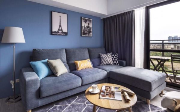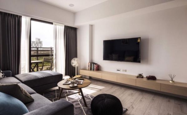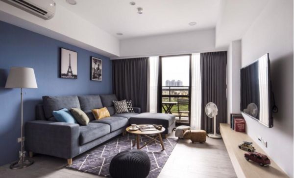 透过简约的北欧风格替家屋定调,利用大量的白与浅色木纹,铺设出清爽的家屋气息;蓝色沙发背墙的设定,烘托出空间的主体视觉,再结合美观造型的收纳柜体,兼具美学与实用机能。