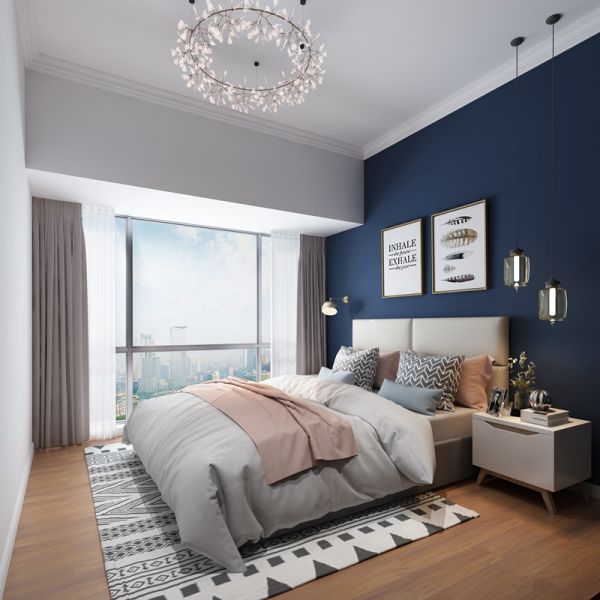 年轻女孩喜欢有个性的东西,所以女主在女儿房里用了墨蓝色,床头背景也采用不规则的造型布局,再配备高软的大床,可以让结束繁忙工作归家的女儿睡得更踏实舒服。