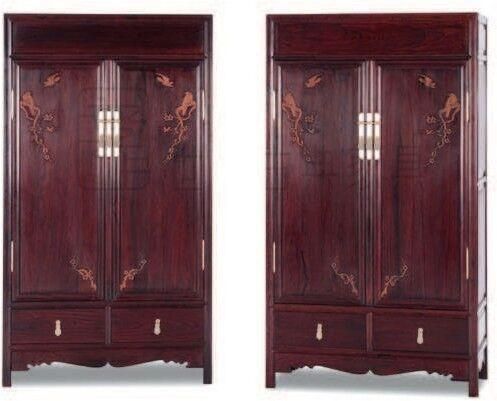 不同于顶箱柜的高大,1.88 米的高度更适用于现代家居,实用且精致。 两组双门衣柜的缩略造型,精致小巧,玲珑可爱,放置于女性的卧室特别合适。 其简洁的风格,再辅以花鸟为丝羚檀雕工艺,这一手一刀的细活儿考验的的是工匠师父的匠心,整个衣柜也在简约中又多了一丝生动。 所雕梅花、喜鹊, 还寓意喜庆祥瑞。
