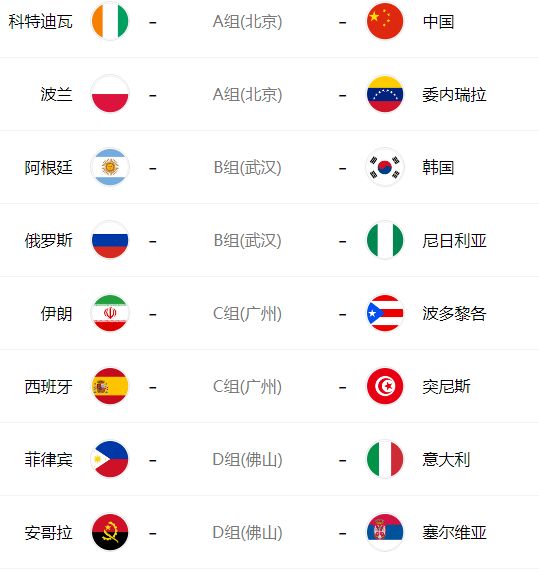 31号男篮世界杯对战表:中国--科特迪瓦兰--委内瑞拉阿根廷--韩国俄罗斯--尼日利亚伊朗--波多黎各西班牙--突尼斯菲律宾--意大利安哥拉--赛尔维亚