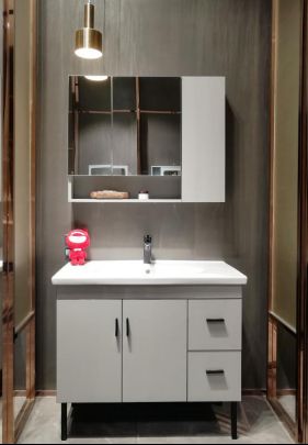 这款浴室柜的面板为水墨灰哑光材质,与简约风格碰撞出一股优雅质感与时尚摩登感,同时又能塑造出平和舒适的氛围。主柜、洗漱台、镜柜的收纳空间,让东西不再无处安放,另外还有650*480*830mm和850*480*830mm两种尺寸,我们可以根据自家浴室的空间大小和收纳需求进行自由选择。