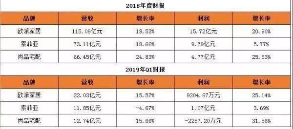(欧派家居、索菲亚、尚品宅配2018年度、2019Q1财报关键数据)