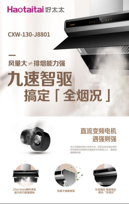 为解决这一用户痛点,好太太电器推出拥有全程智能巡航增压排烟技术的瞬时净吸油烟机,可自动感应公共烟道压力变化,并根据公共烟道的压力调整烟机排烟压力,轻松搞定“全烟况”,还用户一个清新舒适的厨房环境。
