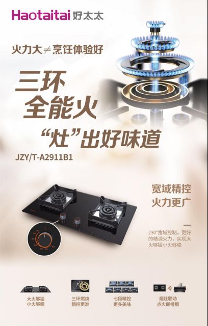 经过长期的深度洞察,好太太电器匠心打造的0.3Kw~5.2Kw超宽频三环火灶具,正是那个可以带给客户更智能的烹饪体验,精确应对用户需求的好灶。最大火力高达5.2Kw,最小火力低至0.3Kw,达到了市场现有产品的极值。七段档位火力,230度超宽频的火力调节,三环精控“全能火”,让用户轻松掌控各式烹饪。