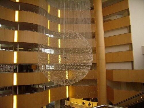 天津水晶宫酒店大堂固装,弧形墙板木作包柱子高度达到26米