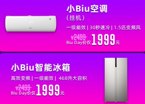 空调选得好,冰箱又怎能差?!又大又省电的苏宁极物小Biu智能冰箱具有468L大容量,满足全家人的食品需求,想囤什么就囤什么。Biu Day价仅1999元,让你花更少的钱,买更惠心的大冰箱!