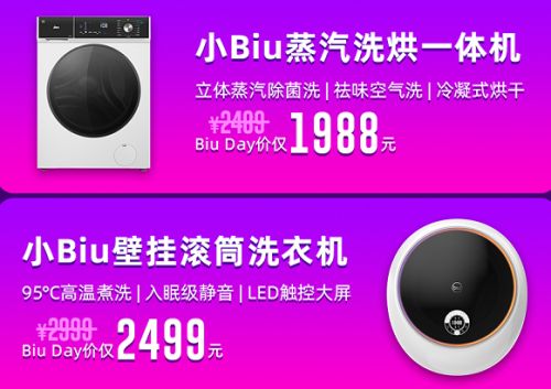 苏宁极物小Biu蒸汽洗烘一体机,立体蒸汽除菌洗,高温洗除菌率高达99.99%。1小时即洗即穿的功能深受消费者夸赞,再临时的会议,或是重要的约会,都无需担心脏衣服来不及晾晒!Biu Day价仅1988元!而活动价2499元的小Biu壁挂滚筒洗衣机拥有95°C高温煮洗功能,呵护全家的衣物健康就是这么简单。