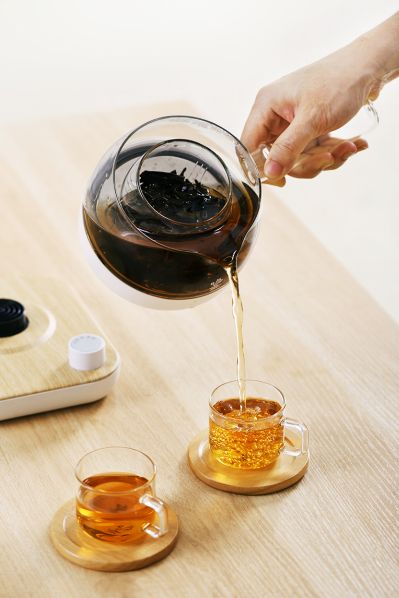 这款养生煮茶器为煮倒一体式,日常烹煮养生茶很方便,只需要把搭配好的养生茶叶放进壶内的玻璃茶漏里,然后再根据不同的茶煮需求,选择自动或手动煮茶模式,便可一键开启煮茶世界。自动模式适合日常家居犯懒时小煮一下,快速简单;手动模式慢煮养生茶刚刚好,煮茶中途添水也没问题,不会少去自己动手煮茶的乐趣。两种模式都设有文武火的火力烹煮,武火快速煮沸,之后转入文火慢煮,如此火候,恰到好处,能将茶煮香煮透。整个烹煮过程静音低噪,不对人造成干扰,百搭办公室、书房和卧室多个场景使用。