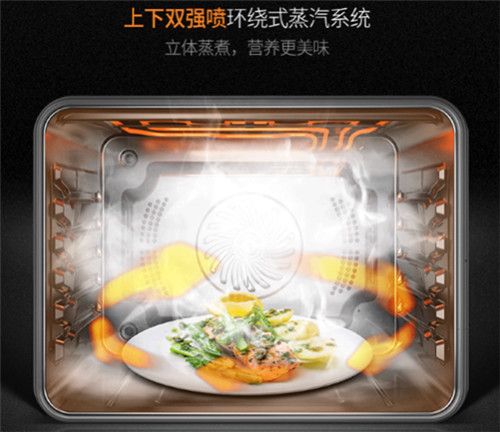 针对传统蒸箱蒸汽不均匀的问题,华帝采用了隐藏环绕式蒸汽系统,可以说是蒸汽技术的一大技术改良。该技术采取上下双强喷蒸汽,实现立体式蒸煮效果。更关键的是蒸汽温度可高达110摄氏度,比传统高10摄氏度,难熟食物也能轻松烹饪。