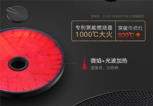 右侧爆炒灶眼,采取聚能燃烧器,拥有近万个微型火孔,出气均匀,火力更强大,燃烧更加稳定。更关键的是,华帝专利燃烧器的火力高达1000℃,突破了传统燃气灶800℃的最高极限,跟爆炒场景十分相配。