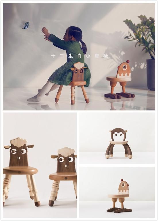 第一款生肖椅作品“小猴椅”上线后,“哈木的房间”也一跃成为“网红”。其相继推出的中国风“十二生肖儿童椅”系列,由黑胡桃、硬枫木和红樱桃木三种珍贵实木自然拼色而成,椅腿修长,颜值满分,高挑身材,超细打磨的木材,可以和小朋友亲密互动,因自然生趣而受到网友追捧。