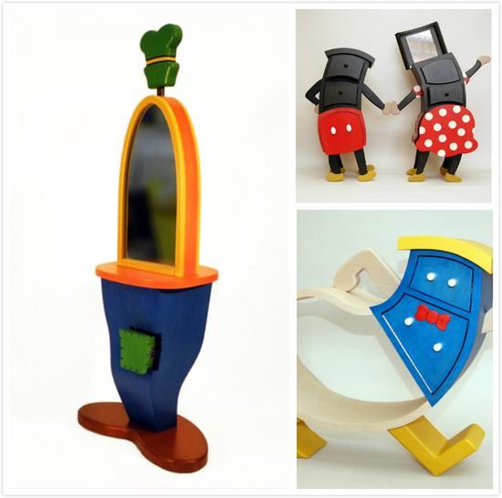加拿大设计公司Straightline Designs的家具,也充满童趣,奇异的造型,明亮的色彩,让大人和小孩都会喜欢。其中,他们就将米老鼠、唐老鸭和高飞三个迪士尼动画片中的经典人物造型,变身为实用的畅销款儿童家具。
