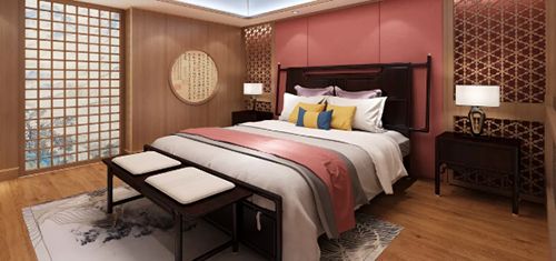 △将乾清宫纹样、皇家专用色彩引入室内设计中,营造古朴厚重的氛围;海尔全套智慧家电打造智慧卧室场景,一键启动睡眠模式,即可自动关闭灯光、调整空调进入睡眠模式,于古意盎然中体验智慧科技的便利舒适。