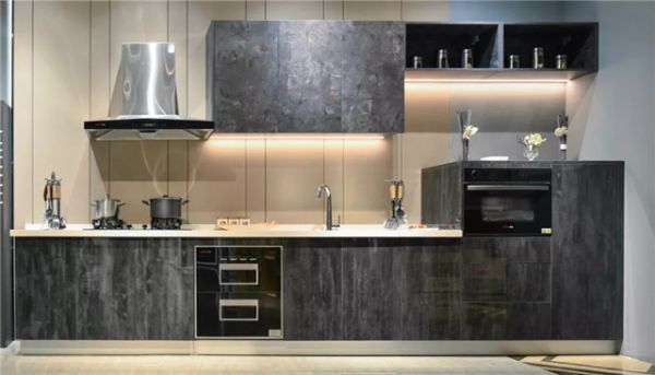 厨房装修不知道要选什么风格?领尚橱柜-拾光知味帮你设计好了!亮面+高级灰的结合,呈现岩板装饰效果,散发着摩登优雅的低奢魅力。合理的空间分割,赋予了厨房惬意的生活节奏。精选优质基材,表面平整、不易变形、色泽鲜艳、耐磨耐腐蚀。