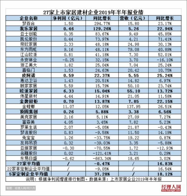 27家上市家居企业2019半年报出炉,定制家居逆势增长