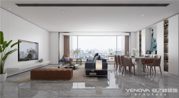 设计说明:风格定位为现代极简风格,本户型为204平米的平层,根据客户的要求在前期平面布局设计上做了部分改动:拆除、新建墙体,通过地面的铺贴及顶面的呼应营造了一个温馨舒适的客厅。使得空间最大化的利用;把墙面造型及吊顶适当的搭配在整体处理上也能够达到一个良好的效果,并且改善了客厅的自然光线和视野,把户外美丽的风景融入室内,满足了业主对生活品质的需求。