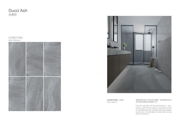 家居中的卫生间装修,需要注重空间使用的安全性,不少居家者都因为防滑工作没有做到位,而给居住环境埋下一个非常大的安全隐患。箭牌瓷砖——古奇灰,采用创新防滑釉面技术制作,在遇水的情况下,瓷砖会变得更加防滑;这款瓷砖不仅改变传统防滑砖的凹凸砖面设计,也在更大程度上提升卫生间的安全性,让每位居家者都能拥有高品质的居住环境。
