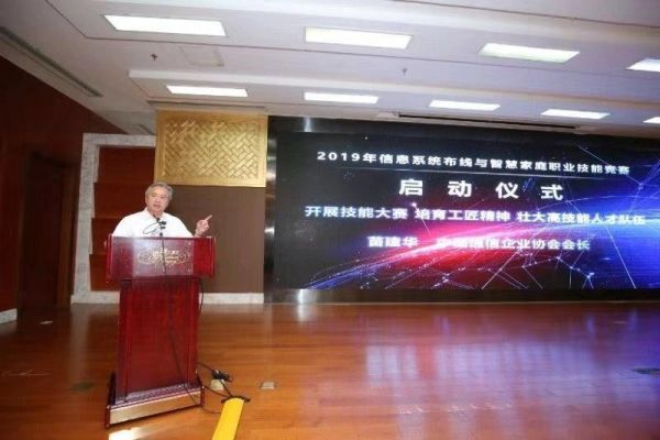 8月29日上午,“2019年信息系统布线与智慧家庭职业技能竞赛启动仪式”在北京辰茂鸿翔酒店举行。中国通信企业协会会长苗建华、中国通信企业协会通信网络运营专业委员会高级顾问朱立军、中国通信企业协会通信网络运营专业委员会主任靳东滨、中国通信企业协会副秘书长柏国林、中国通信企业协会通信网络运营专业委员会秘书长范贵福、中国智慧家庭及社区技术与应用联盟秘书长王玺以及中国电信、移动、中国联通、中通服、中通建、中移铁通等单位领导以及本次竞赛支持企业负责人、媒体代表、行业专家参加了本次启动仪式。