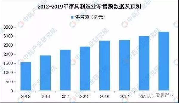 经统计整理,2012-2017年家具类消费占商品零售比重相对稳定,比重基本维持在0.9%左右。预计2019年家具类消费在商品零售中占比会在0.86%左右,2019年零售额将超过3200亿元。(来源:世界家居人,作者:居里夫人)