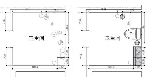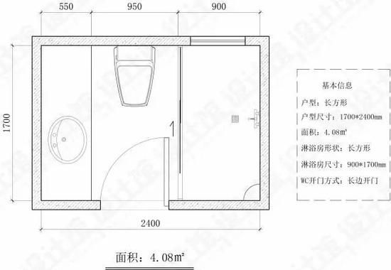 而进深较小的长方形卫生间,开门却在长边的时候,可以采用洗与开门在短边的类似,一般而言洗手盆跟马桶的位置要根据实际卫生间的长宽来安排;