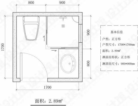 正方形的卫生间设计起来较为尴尬,一般就是通过缩减淋浴房的长度来实现功能的布置,正方形的小面积卫生间基本是把淋浴房布置在门的对角,然后把洗手盆、马桶分别布置在两边的角落;