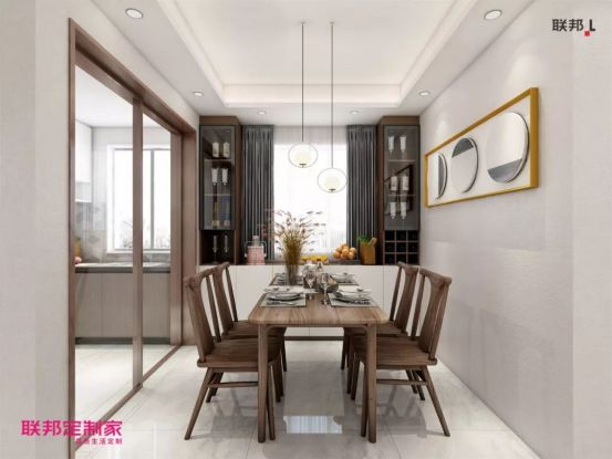胡桃色的家具低调内敛,沉稳大气,在阳光的照射下,明亮的餐厅充满了淡雅静谧的意境。