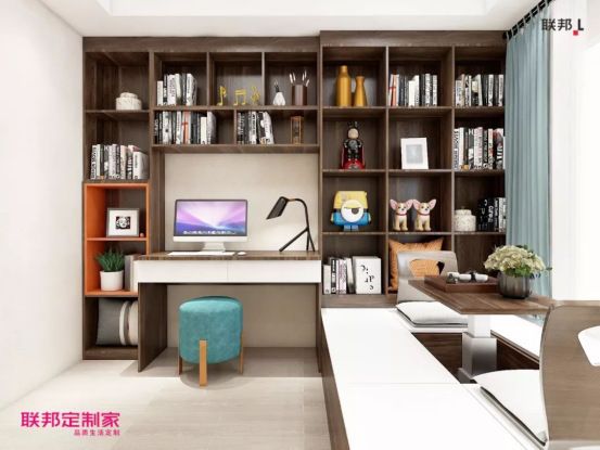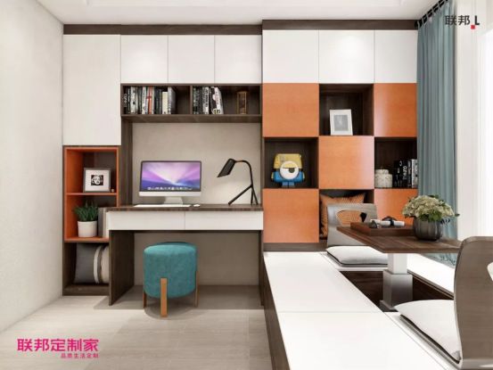 多功能书房,不再局限于颜色单一的榻榻米,胡桃色与橙色的高调配色,触动视觉感,也撩动了沉寂的心弦。