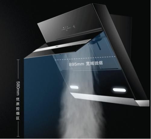 老板油烟机27A3H还开创性地采用了隔烟屏与宽域面板的结合。隔烟屏的外观形似飞机高速副翼,与宽域面板结合起来,就形成了近距离的高效吸排系统。操作时,面板开启后会形成宽895mm、高580mm的有效直排控烟区域。两点之间直线最短,更高效的直排吸烟,搭配440Pa的直排风轮的高速排烟,吸、排效率更高,即使爆炒也不怕呛烟、跑烟。