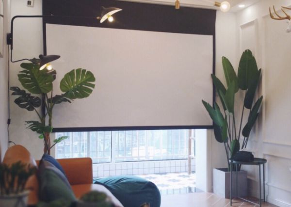 如果想让空间来点变化,一成不变不可取,将投影幕布安装在窗前位置,既节约空间又可以利用幕布自身当遮光布,省钱省力又有种小而美的气质。