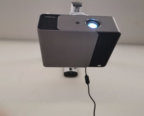 想要将投影仪移动至卧室或者书房观影的,可以在墙面装个搁板,或者直接墙面吊装把投影仪放上去。有些投影仪支持梯形矫正,不用担心空间的问题局限。
