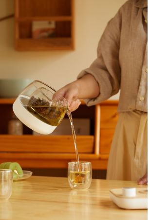 鸣盏养生煮茶器的烹煮体验极其轻松简便,但是煮茶器整体的设计美感却丝毫不减。侧把壶设计,是旧器新造,握持之间尽显仪式感;高硼硅玻璃的通透设计,不落旧物窠臼,又具网红气质,同时还能观赏到茶叶逐渐浸染着色、从微展到舒展的烹煮全程;木纹底座,彰显了生活的质感和厚度。