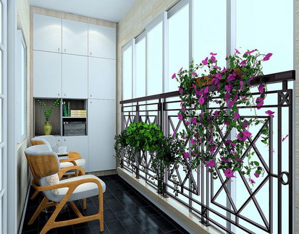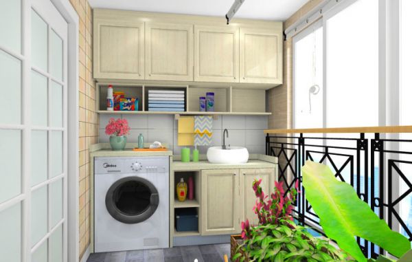 如果你家的是独立大阳台,那么可以根据面积情况,两边都做柜子,中间主要作为晒衣区使用。闲时在摆上桌子椅子在这喝茶看风景,也是一种生活乐趣。